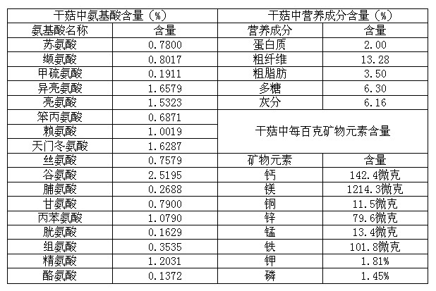 每100克可食部分含水量92.5克,蛋白質(zhì)2.1克,脂質(zhì)0.3克,碳水化合物(糖質(zhì)3.7克,纖維0.7克),灰分0.7克(其中鈣2毫克,磷75毫克,鐵1.1毫克),維生素A 1U,維生素B1 0.08毫克,維生素B2 0.5毫克(可以加速體內(nèi)脂肪的代謝,有美容的效果)。斑玉蕈的蛋白質(zhì)中氨基酸種類齊全,包括8種人體必需氨基酸,其中賴氨酸、精氨酸含量高于一般菇類,對青少年智、增高起著重要作用。斑玉蕈子實體中提取的β-1,3-D葡聚糖具有很高的抗腫瘤活性,而且從斑玉蕈中分離得到的聚合糖酶的活性也比其它菇類要高許多,其子實體熱水提取物和有機溶劑提取物有清除體內(nèi)自由基作用,因此,有防止便秘、抗癌、防癌、提高免疫力、預(yù)防衰老、延長壽命的獨特功效。作為大眾消費的食品其貨架期長,是一種低熱量、低脂肪的保健食品。